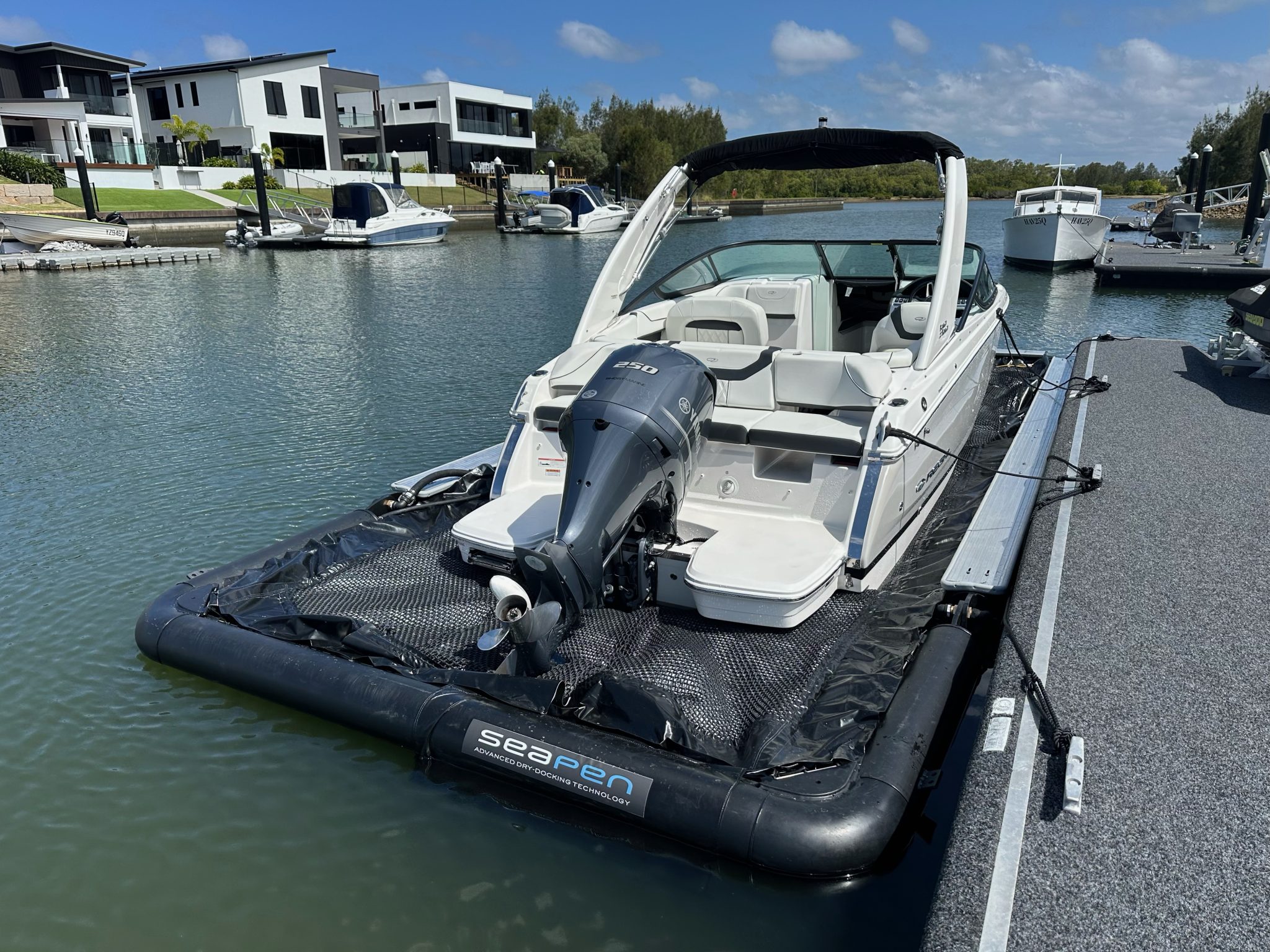 Store your vessel on a SeaPen for faster, easier access. By keeping your hull out of the water, you get all the benefits of in-water docking – without toxic antifoul.